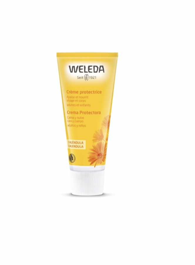 Lo que es bueno para la piel del bebé, es bueno para ti. Por eso se convierte nuestra Crema de Caléndula en el cuidado esencial para toda la familia, ya que une las virtudes nutritivas y protectoras del aceite de almendra dulce y de la cera de abeja con las virtudes calmantes de la caléndula bio. De textura untuosa, previene el desecamiento cutáneo y protege todo tipo de piel en cara y cuerpo de las agresiones externas y las condiciones climáticas desfavorables como el frío o el viento. Los extractos de caléndula alivian y calman la piel seca, sensible e irritada.